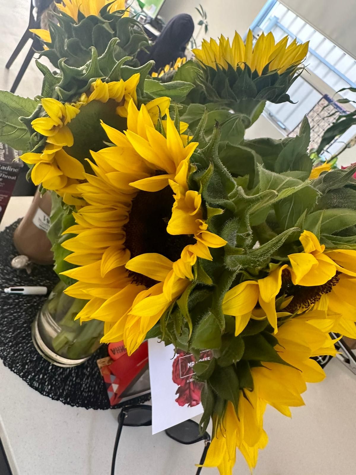 Beautiful sunflowers that were sent as a birthday present for my sister and she loved them